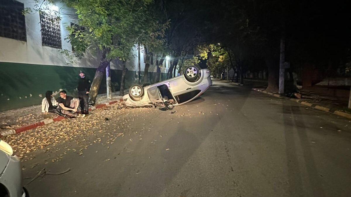 El conductor perdió el control del auto impactó un árbol y volcó. La policía le realizó el test de alcoholemia y dio positivo con 0,97 de alcohol en sangre.