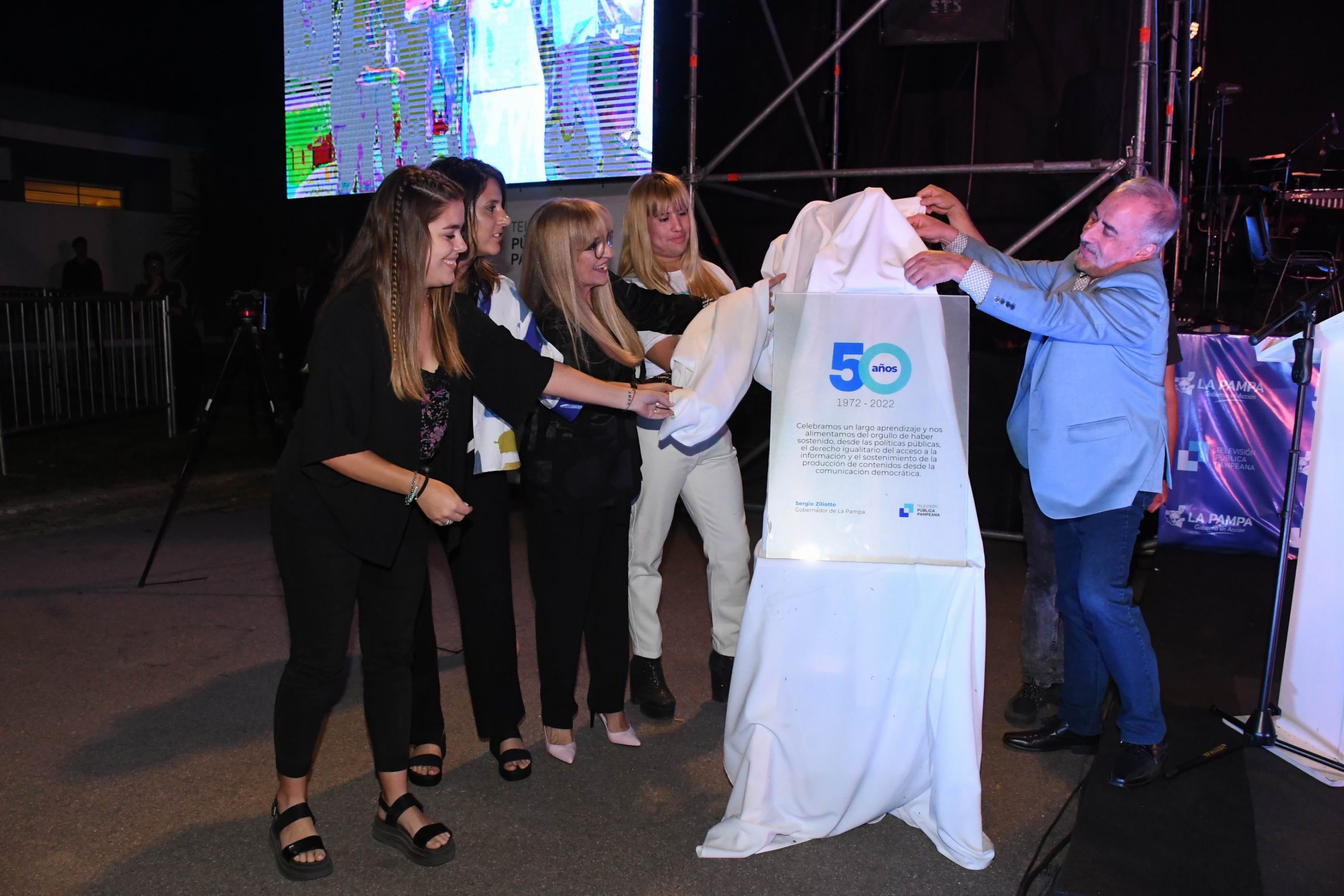 En otra de las actividades destacadas de la celebración, se descubrió una placa que recuerda el cincuentenario de la emisora pública estatal y que será emplazada en el frente del canal con el texto “Celebramos el aprendizaje y nos alimentamos del orgullo de haber sostenido, desde las políticas públicas, el derecho igualitario del acceso a la información y el sostenimiento de la producción de contenidos desde la comunicación democrática”.