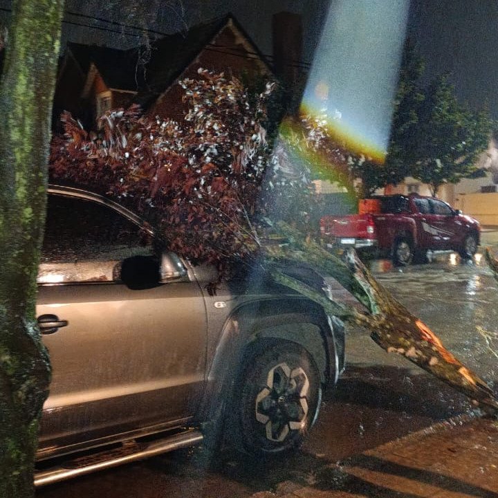 Un árbol cayó sobre una VW Amarok que estaba estacionada en la calle Perú, y le provocó daños.
