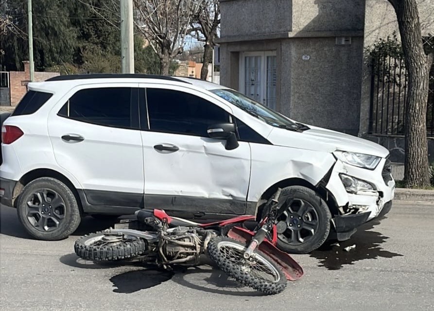 Hoy viernes 23 a las 11 hrs ocurrió un nuevo accidente en Santa Rosa, que involucró a un auto y una moto en la esquina de Neuquén y Salta.