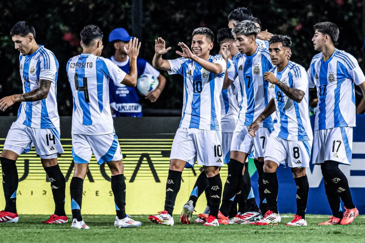 Formación de Argentina: Santiago Barbi; Dylan Gorosito; Juan Giménez; Tobías Ramírez; Julio Soler; Valentino Acuña; Milton Delgado; Maher Carrizo; Claudio Echeverri; Ian Subiabre; Agustín Ruberto. DT: Diego Placente.