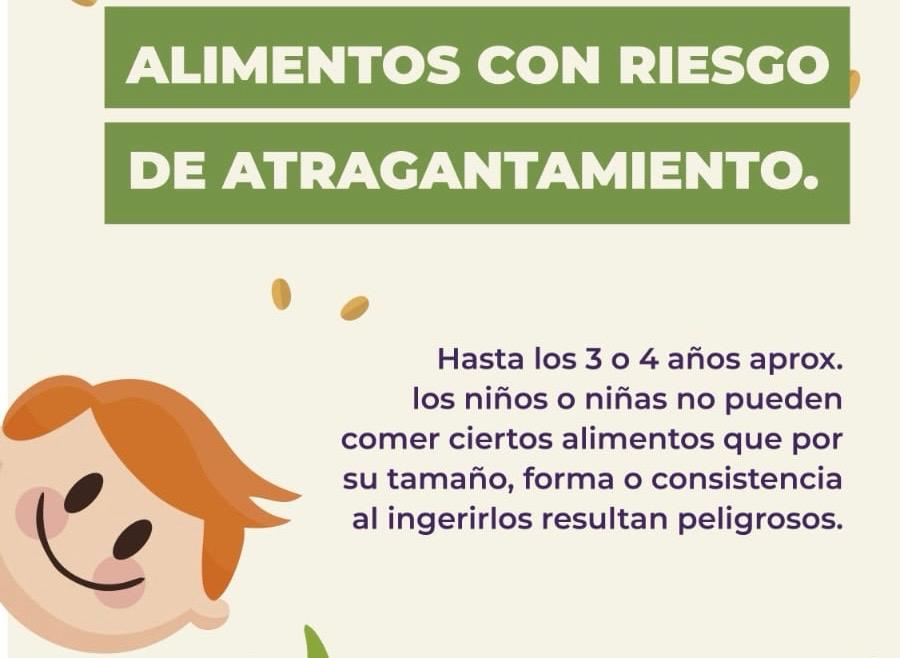 La Dirección de Primera Infancia recordó que a hasta los 3 o 4 años, aproximadamente, los niños no pueden comer determinados alimentos que, por su tamaño, forma o consistencia, representan riesgo de atragantamiento al momento de ingerirlos.