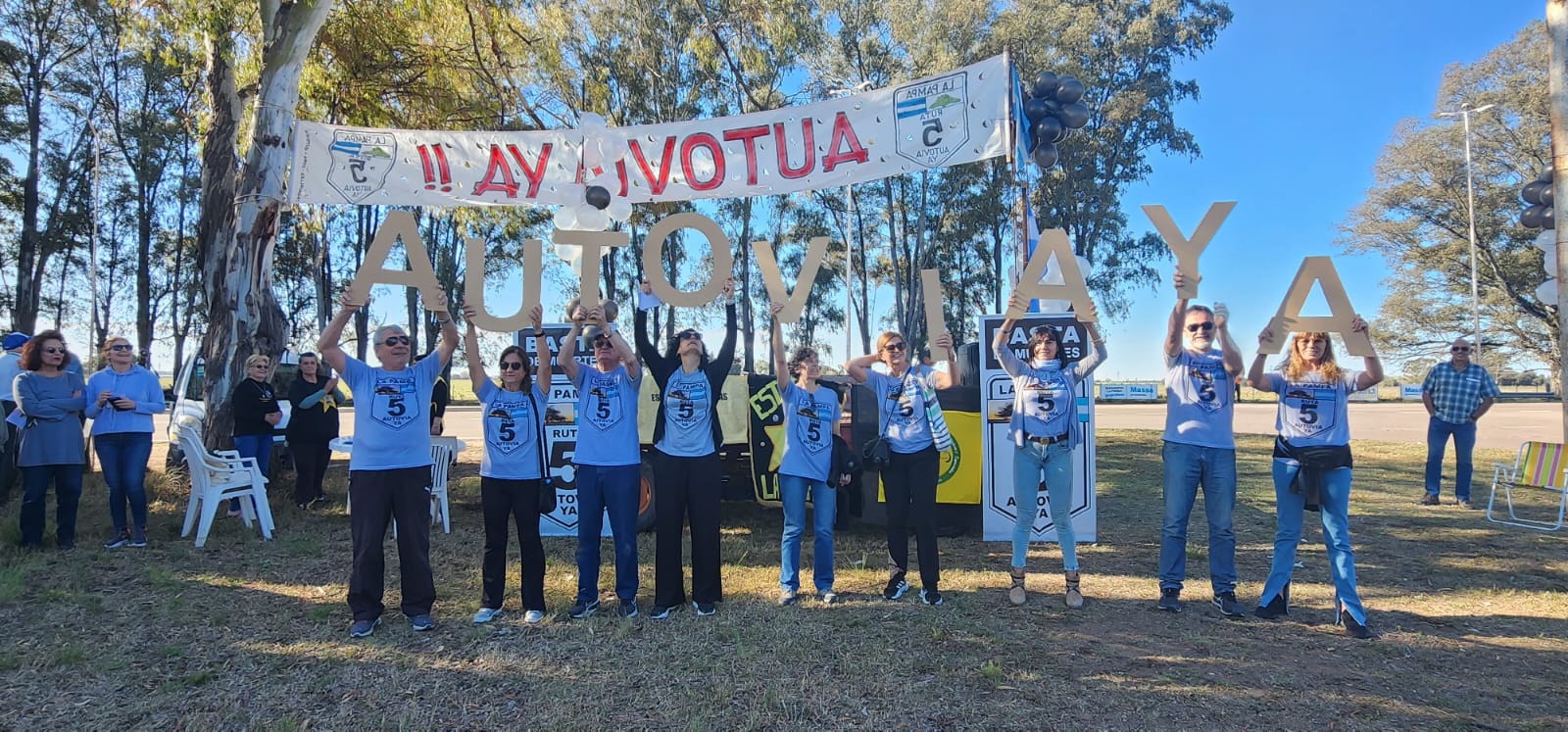 Hoy jueves 5 de Octubre a las 17 horas unas, 200 personas reclamaron en Santa Rosa a las autoridades provinciales y nacionales Autovía Ya en la Ruta 5 que une Santa Rosa con Buenos Aires.