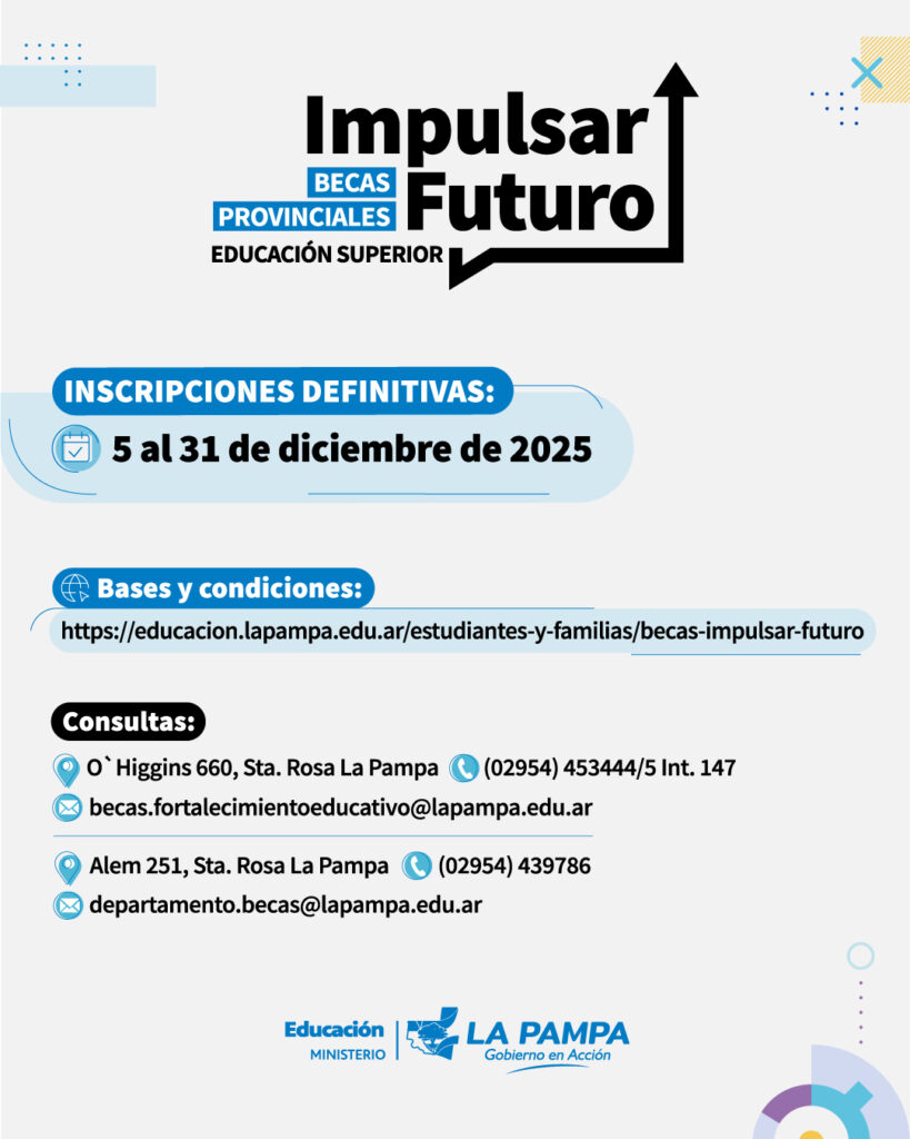 Para obtener mayor información respecto al programa, las familias podrán ingresar al sitio web del Ministerio de Educación de La Pampa: https://educacion.lapampa.edu.ar/estudiantes-y-familias/becas-impulsar-futuro .