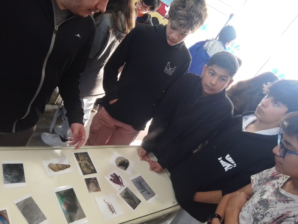 La actividad central del proyecto de extensión en la visita a la Villa Turística fue la charla-taller realizada con estudiantes y docentes del Colegio Secundario Casa de Piedra. Se realizó una síntesis de las tareas y objetivos alcanzados y por alcanzar. Luego, en la charla taller “Una ventana al pasado, nos sumergimos en los mares del Cretácico Pampeano”, se les brindó un marco teórico sobre la paleontología y patrimonio paleontológico; tratando de establecer pasos a seguir para la preservación y puesta en valor de los afloramientos de la Villa. Además, se les presentó tres estaciones de trabajo dónde pudieron interactuar con ejemplares fósiles y realizar juegos lúdicos.