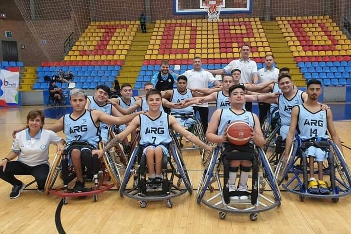 Foto (Valentín tiene el número 7) La selección argentina masculina de básquet sobre silla de ruedas, con el pampeano Valentín Gómez, se coronó campeona en…