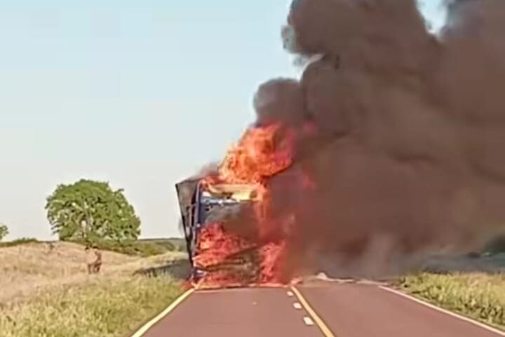 Hoy sábado 2 a las 10 horas se incendió en su totalidad un camión brasilero en la Ruta Nacional 143, a 50 kilómetros de General…