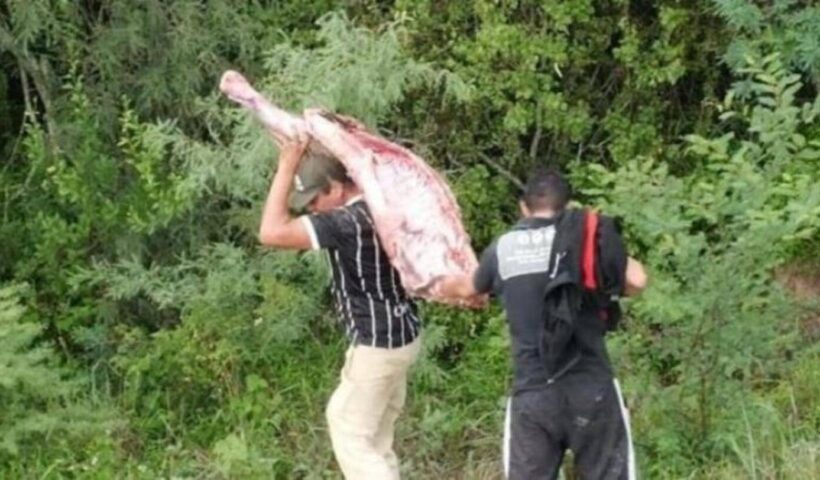 Volcó un camión con carne y en minutos lo saquearon