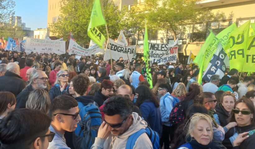 Estudiantes, docentes y gremios se movilizaron en el centro de Santa Rosa donde reclamaron por el presupuesto universitario y contra el posible veto del Presidente…