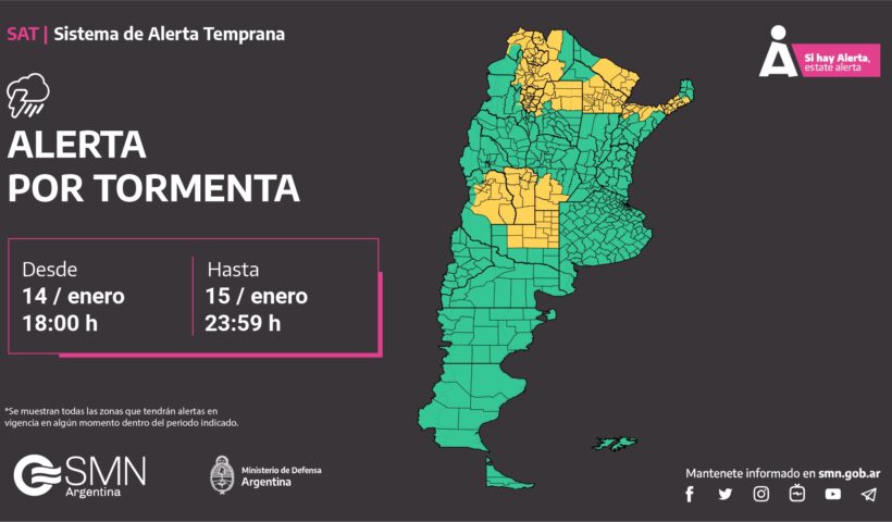 Este domingo 14 el Servicio Meteorológico Nacional emitió un Alerta Amarillo por tormentas para La Pampa, San Luis, sur de Córdoba, Mendoza y Neuquén. También…