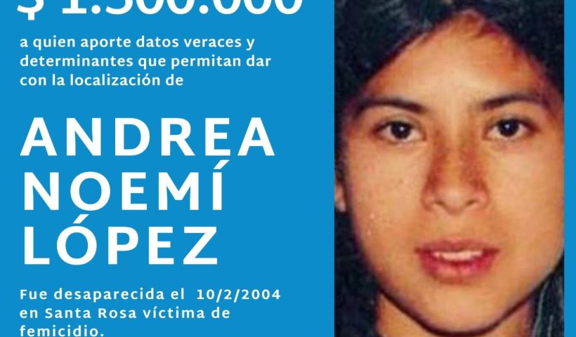 Recompensa ofrecida a quien brinde datos concretos que logren localizar los restos de Andrea Noemí López