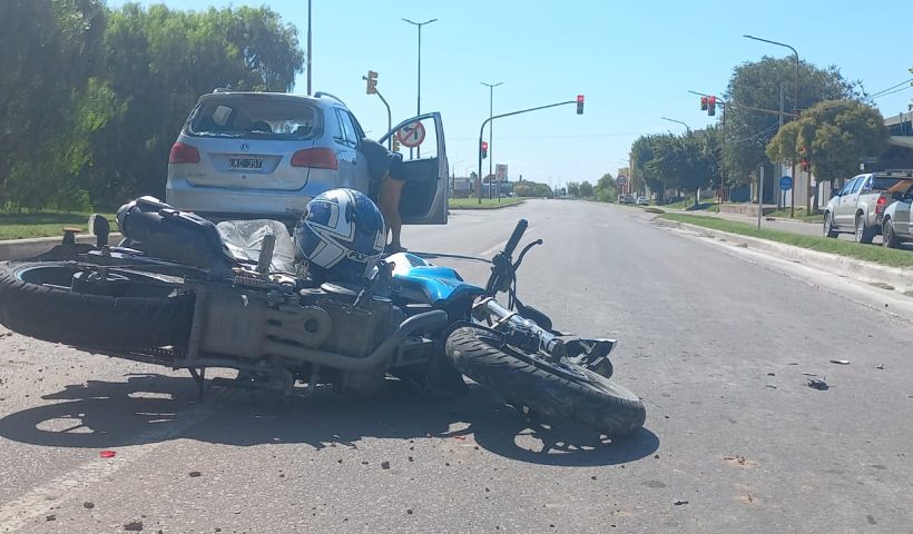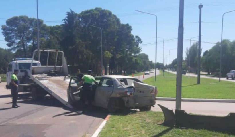 Un Toyota Corolla se disponía a cruzar desde colectora a la arteria principal de Av. Peron al ingresar es embestido en su parte trasera por un Chevrolet Corsa,