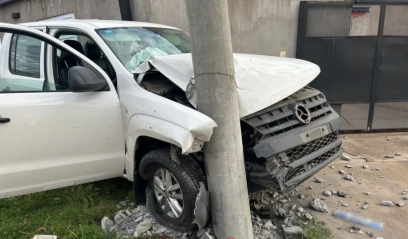 Hoy domingo 17 a las 6:50 horas, una camioneta VW Amarok color blanca chocó contra una columna de La CPE en Cavero y E. Schmidt…