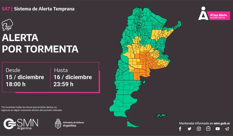 Alerta hoy por tormentas y granizo: La Pampa y otras siete provincias afectadas