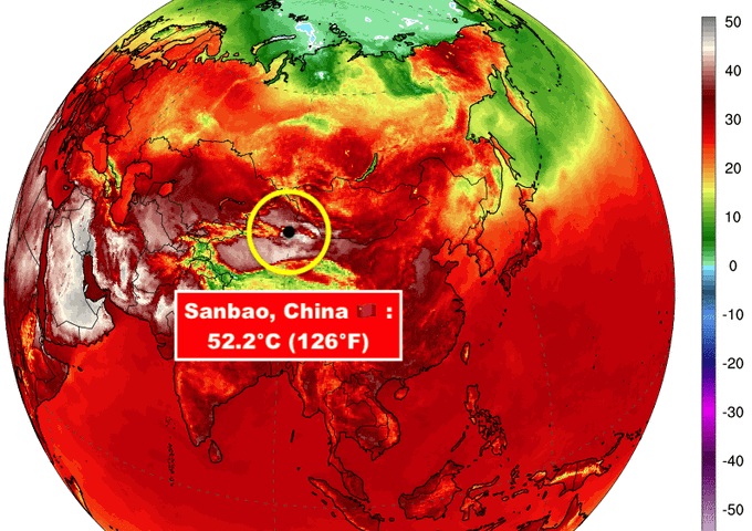 En Sanbao, una remota localidad del árido noroeste de China, se registró un récord nacional de 52,2 grados centígrados.