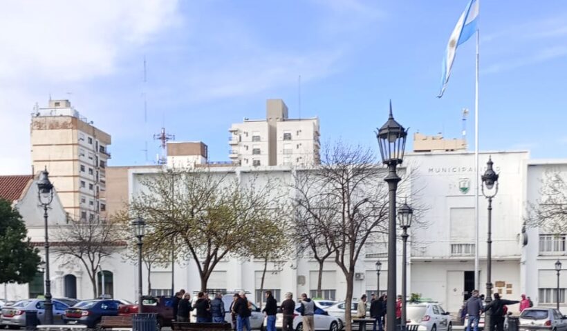 Corte en el tránsito de Avenida San Martín frente al Municipio de Santa Rosa, por protesta de taxistas. Piden a di Napoli que se controle…