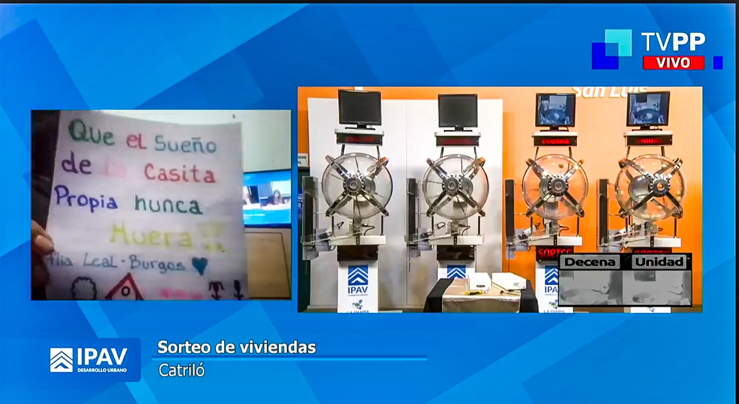 Desde el estudio de la TVPP, Darío Díaz, gerente Legal y Técnico del IPAV, destacó: “Es un momento de mucha emoción compartir, a través de la Televisión Pública Pampeana, este sorteo con las 20 familias seleccionadas. Me quedo con que el sueño de la casa propia nunca debe abandonarse, porque muchas familias hoy no fueron favorecidas, y es cuestión de azar, pero no deben perder las esperanzas”.