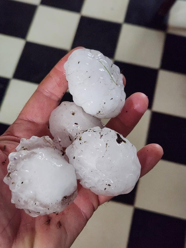Mientras rige un Alerta por fuertes tormentas, cayó granizo del tamaño de huevos en el Paraje La Araña, a unos 20 kilómetros al suroeste de Toay, La Pampa.