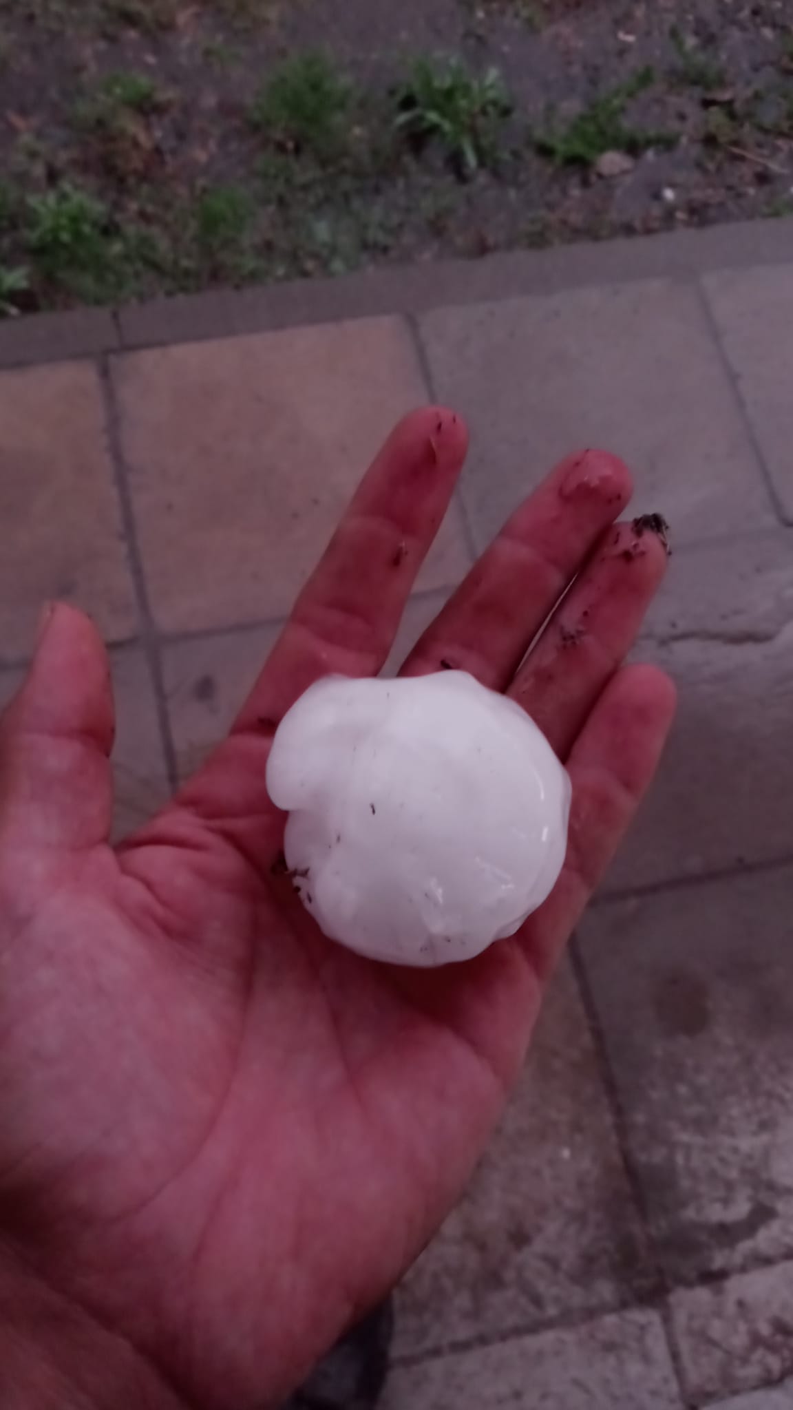 Por la tarde se registraron fuertes lluvias acompañadas de granizo en La Adela, General Acha y en Lihuel Calel, donde cayó piedra de un tamaño impresionante.