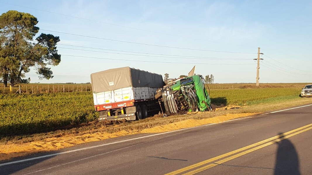 El Jefe policial también precisó que el camión Scania transportaba maíz, por lo cual en el lugar trabajó personal de Bomberos Voluntarios para proceder a limpiar la cinta asfáltica y lograr retirar al conductor del camión.