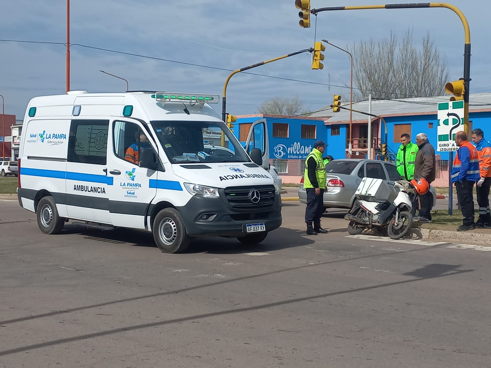 En Santa Rosa ocurrió un nuevo siniestro vial. Hoy sábado a las 11:30 horas circulaba un Chevrolet Corsa por México de norte a sur conducido por una mujer y al llegar a Av. Circunvalación Santiago Marzo Sur impactó a un motociclista que conducía una moto Zanella.