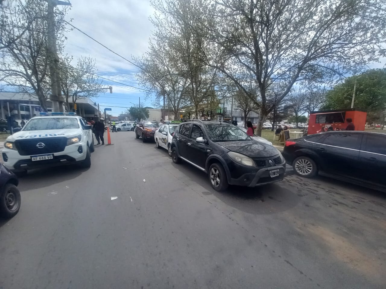 Por causas que investiga la policía, un Renault Sandero frenó en forma abrupta, por ese motivo fue impactado en la parte trasera por un Ford Focus, a este auto lo impactó otro Renault Sandero, que a su vez fue chocado por un Fiat Siena – Taxi – y a este último lo impactó una Fiat Toro.