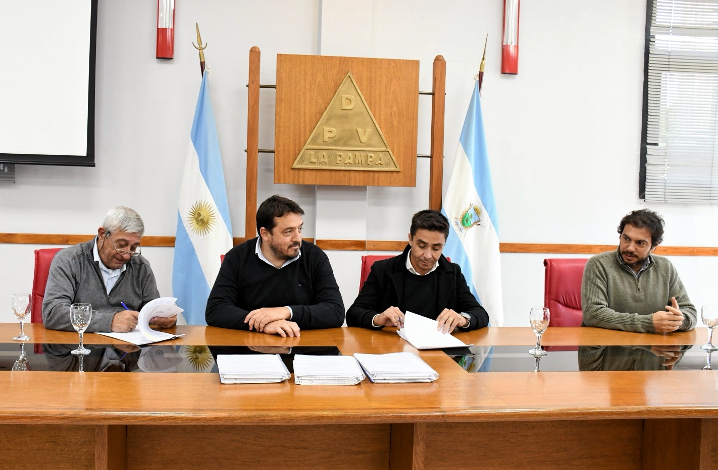 Se firmó el contrato para la pavimentación de la Ruta Provincial 9, que unirá Córdoba con La Pampa. Estuvo encabezado por el ministro de Obras y Servicios Públicos, Alfredo Intronati, el presidente de Vialidad Provincial, Rodrigo Cadenas, y el ingeniero jefe Santiago Chaer, junto a representantes de la empresa encargada de la obra.