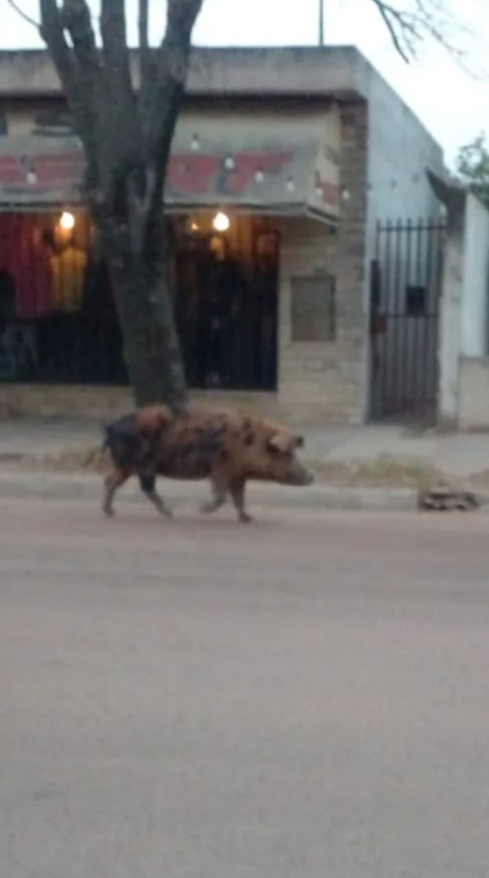 El Domingo a las 8 horas se vio a un Cerdo solitario de buen tamaño caminando por calle Mullally a metros de Av. Balbin.