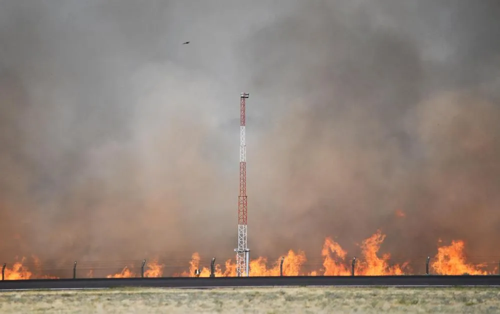 Un incendio de pastizales de grandes proporciones se desató este martes por la mañana en el predio del Aeropuerto de Santa Rosa.
