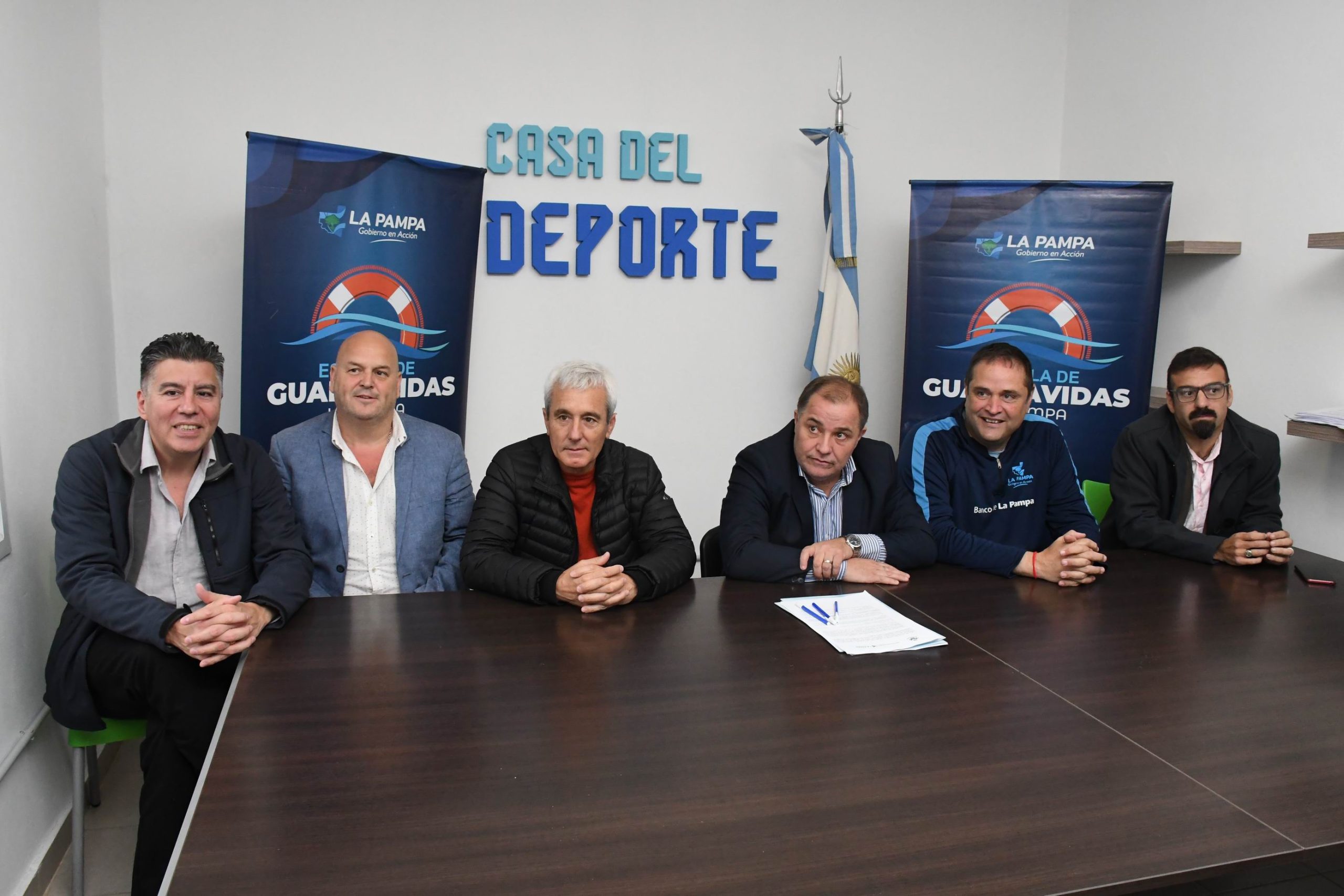 El acto se llevó a cabo en la Casa del Deporte en Santa Rosa con la presencia también del subsecretario de Deportes del Ministerio de Desarrollo Social, Ceferino Almudévar, quien celebró el paso adelante que supone el convenio luego de los años de funcionamiento de la Escuela en la Provincia «como parte de una política deportiva».