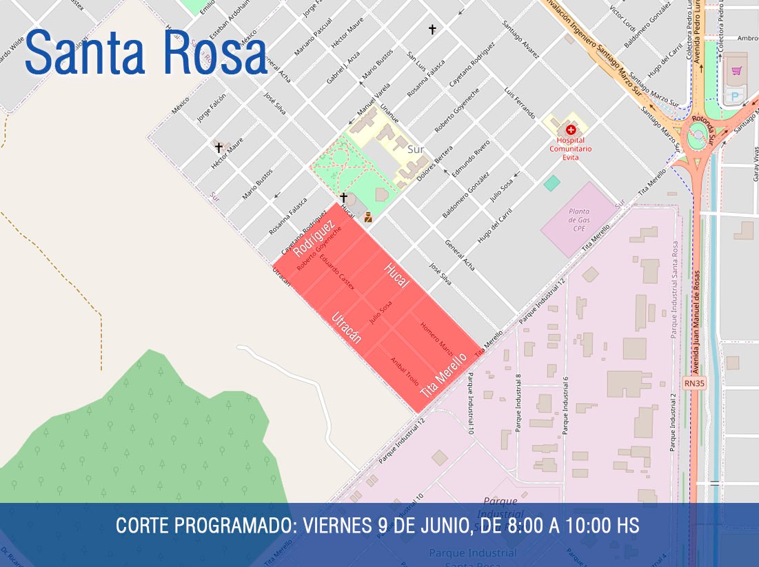 Este viernes 9 de junio, desde las 8:00 hasta las 10:00 horas, se producirá un corte en el suministro de energía eléctrica en la zona comprendida por las calles Tita Merello, Utracán, Rodríguez y Hucal, del Barrio Sur.