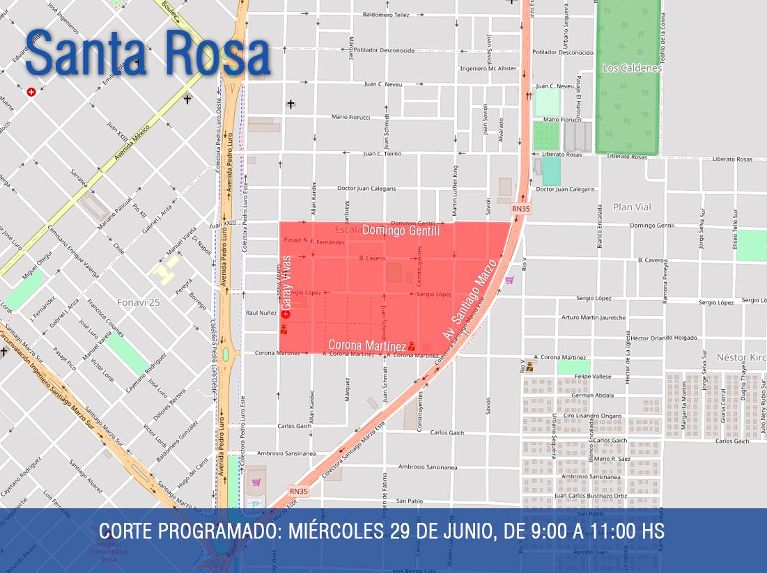 Este miércoles 29 de junio, desde las 9:00 hasta las 11:00 horas, habrá un corte programado de energía eléctrica en la zona delimitada por calles Garay Vivas, Domingo Gentili, avenida Santiago Marzo sureste y Corona Martínez, del barrio Colonia Escalante Sur.