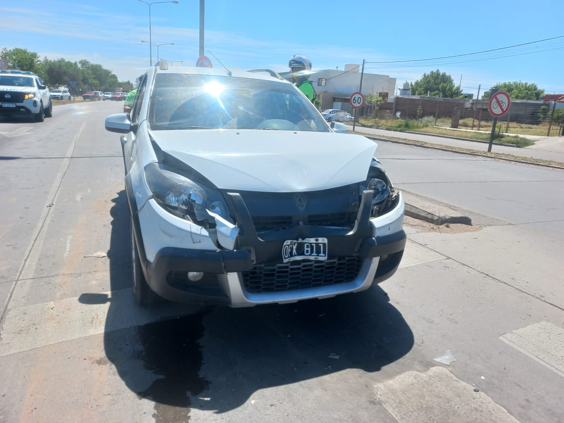Sobre circunvalacion, con sentido norte a sur y aguardando el semáforo que en ese momento se encontraba en rojo, estaba una Toyota Hilux. En su interior iban una mujer y un hombre de Río Gallegos esta Toyota fue impactada por un Renault Stepway conducido por una mujer, a su vez este Renault fue impactado en su parte trasera por un Ford Fiesta que al momento del impacto se le desprendió su rueda delantera izquierda por el fuerte impacto.