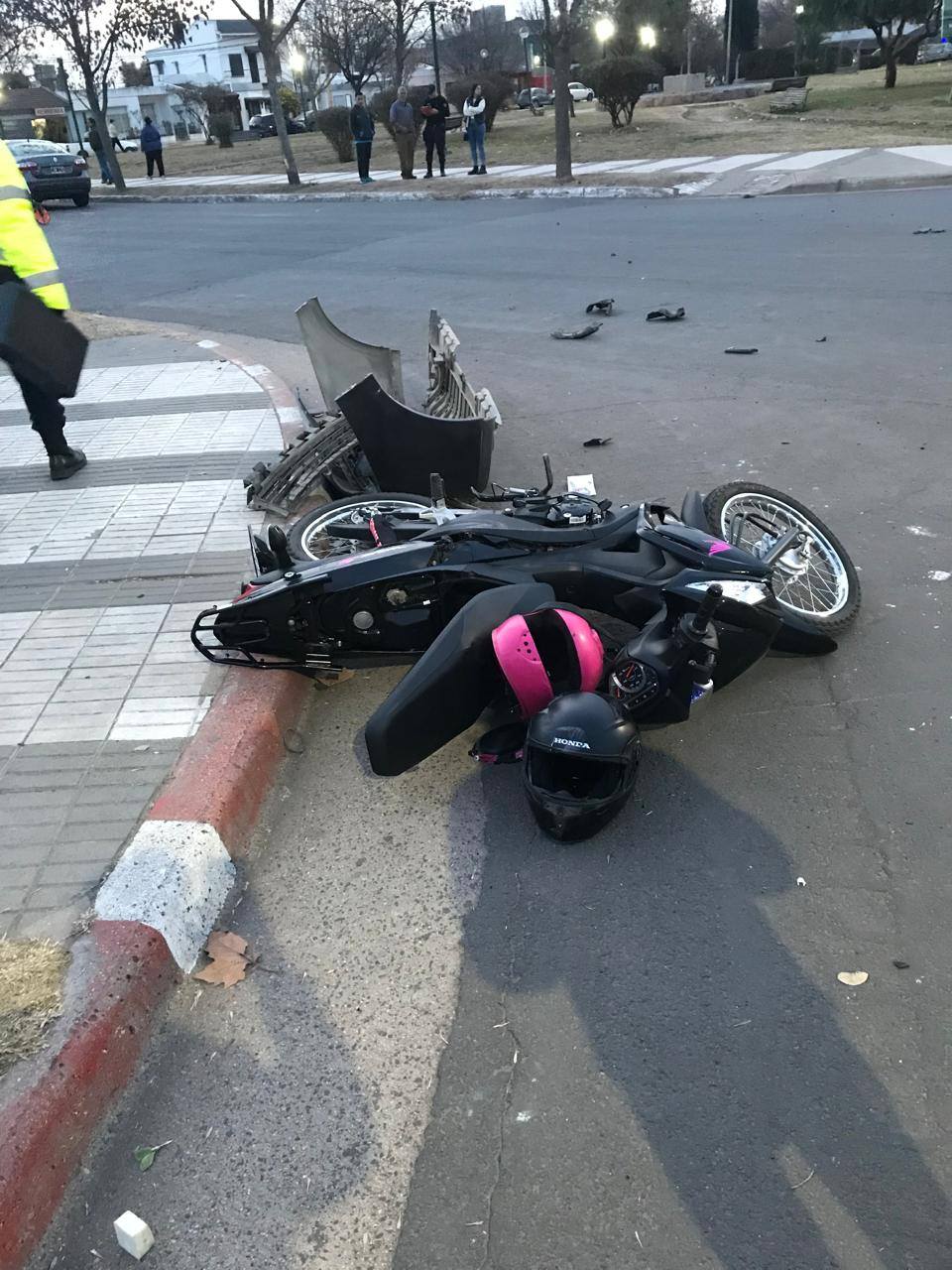 Un choque entre una moto Honda Wave 110cc que transitaba por Spinetto y un Renault Fluence que circulaba por calle Molas, ocurrió cuando ambos vehículos llegaron a la intersección con Neuquén.
