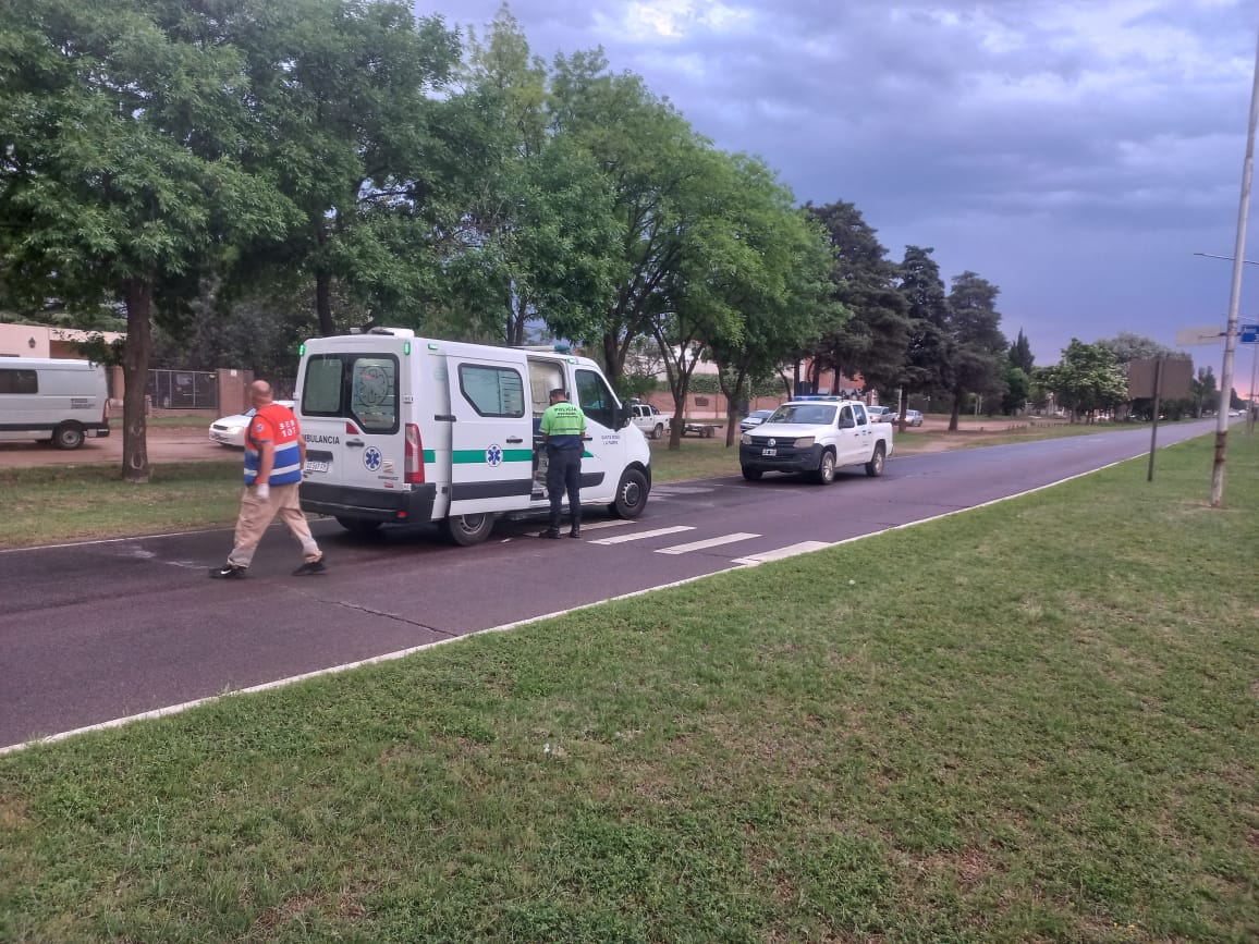 Hoy jueves 31 a las 19 horas circulaba una moto con dos ocupantes por Avenida Peron al 3.400 de sur a norte y al llegar a Peron y Balbin el auto que circulaba adelante de la moto frenó en la rotonda para dejar pasar a vehículos que ingresaban a Peron por la rotonda.