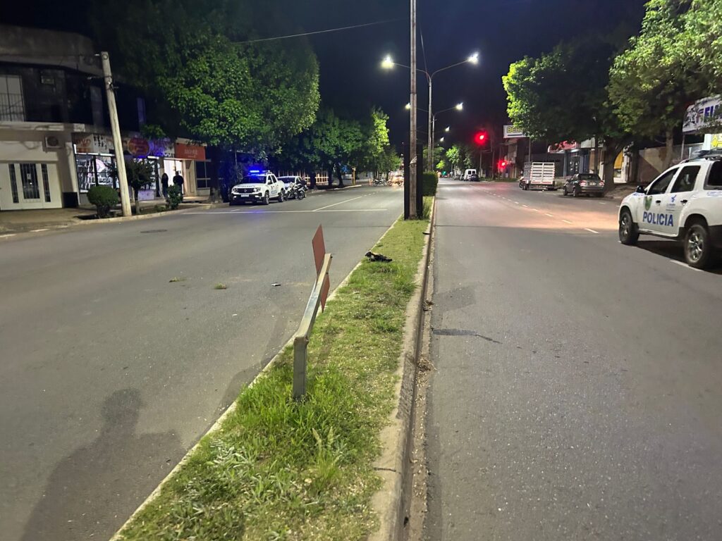 Dos motociclistas chocaron un cartel de señalizació vertical en la madrugada de este sábado, en el cantero central de la Avenida Luro.