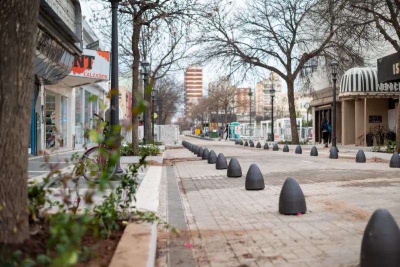 En ese tramo, también, se colocaron adoquines de hormigón y se instalaron bolardos ornamentales a lo largo de ambos laterales de la calle. Con esa intervención, se delimitó un carril vehicular de 3,50 metros de ancho.