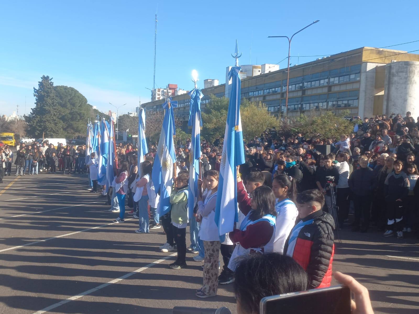 En el acto, que se llevó a cabo esta mañana en la playa de estacionamiento de la Casa de Gobierno, alumnos de cuarto grado de distintas escuelas de la ciudad de Santa Rosa prometieron lealtad a la bandera, siendo este el punto más emotivo de la conmemoración. “Hoy no es un día más en nuestras vidas, hoy es un día de esos que quedan guardados para siempre en la memoria. Un día en el que los alumnos y alumnas de cuarto grado se preparan para prometer lealtad a la Bandera Argentina”, inició su discurso Marcela Feuerschvenger. “Para hablar de nuestra bandera, primero tenemos que hablar del hombre que la creó: Manuel Belgrano. No fue solo abogado y político que tuvo que aprender la carrera militar, fue mucho más que eso; fue un pensador de su época, un defensor incansable de la educación, de la justicia, de la libertad y del trabajo. Fue alguien que creyó, profundamente, que la Argentina podía ser una tierra de oportunidades para todos y todas y por eso habló y escribió sobre las posibilidades de desarrollo económico basado en la justicia social”, resaltó la funcionaria.