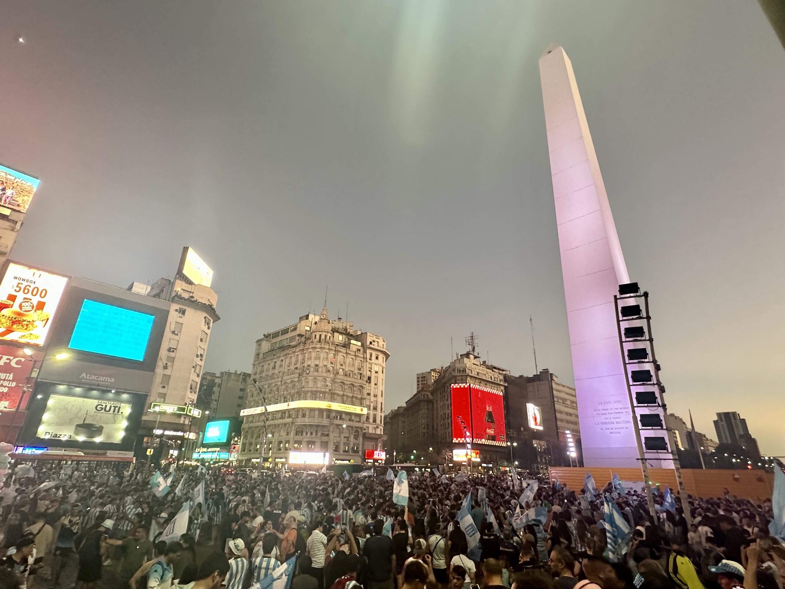 Apenas finalizó la final en Paraguay, el obelisco se tiñó de celeste y blanco, con banderas, bombos y camisetas del club académico al grito de Dale campeón.