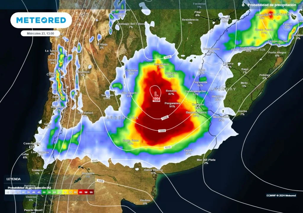 Esto tiene que ver con la presencia de un frente que tenderá a estacionare en el centro de la Argentina, y el ingreso de una profunda e intensa zona de bajas presiones en altura, que forzará la ondulación del sistema frontal en superficie y la posterior formación de un ciclón extratropical hacia el centro-este argentino.
