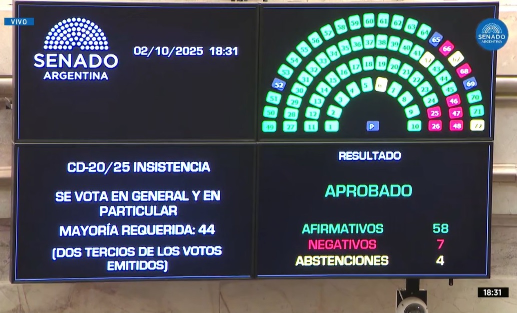 El Senado rechazó este jueves los vetos presidenciales a los proyectos de emergencia en pediatría y el de financiamiento universitario. De esta manera, el gobierno de Javier Milei seguirá en la senda derrotista y deberá promulgar ambas leyes.