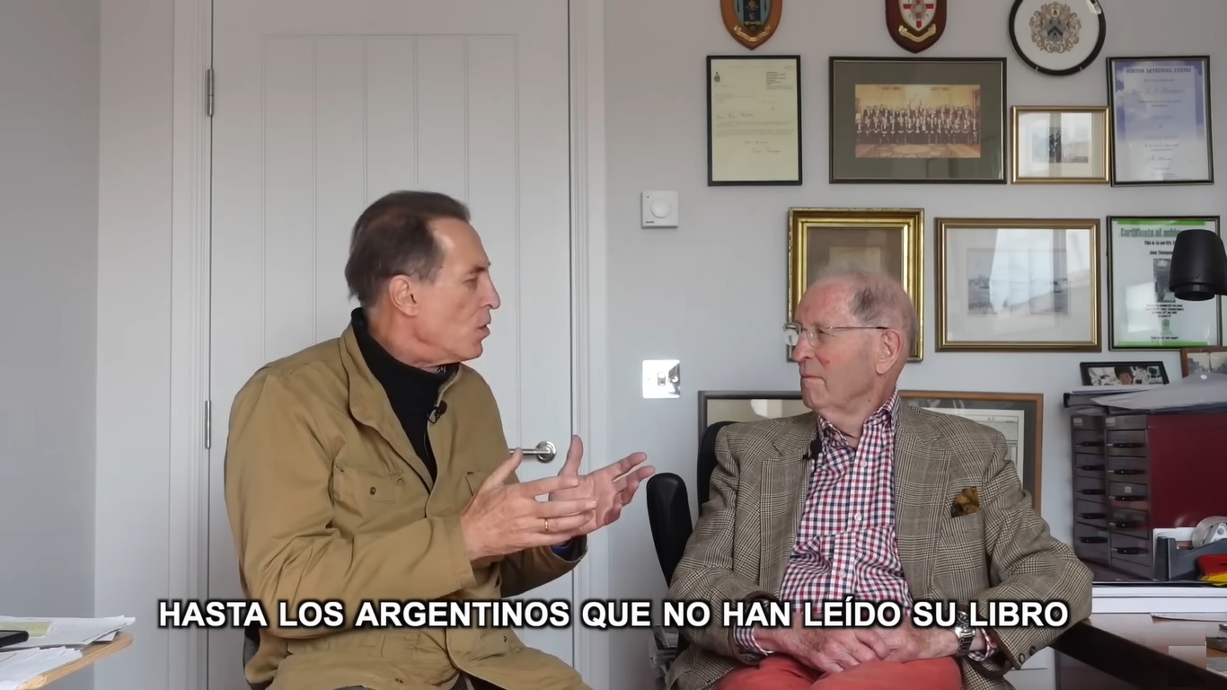 Al estar frente a un periodista argentino, claro está, no se abre del todo y repite algunas de las tesis de la propaganda inglesa. Por ejemplo, el número de bajas. Y si bien no niega que el portaaviones Invencible fue atacado por los Halcones argentinos, sostiene que este no fue impactado.