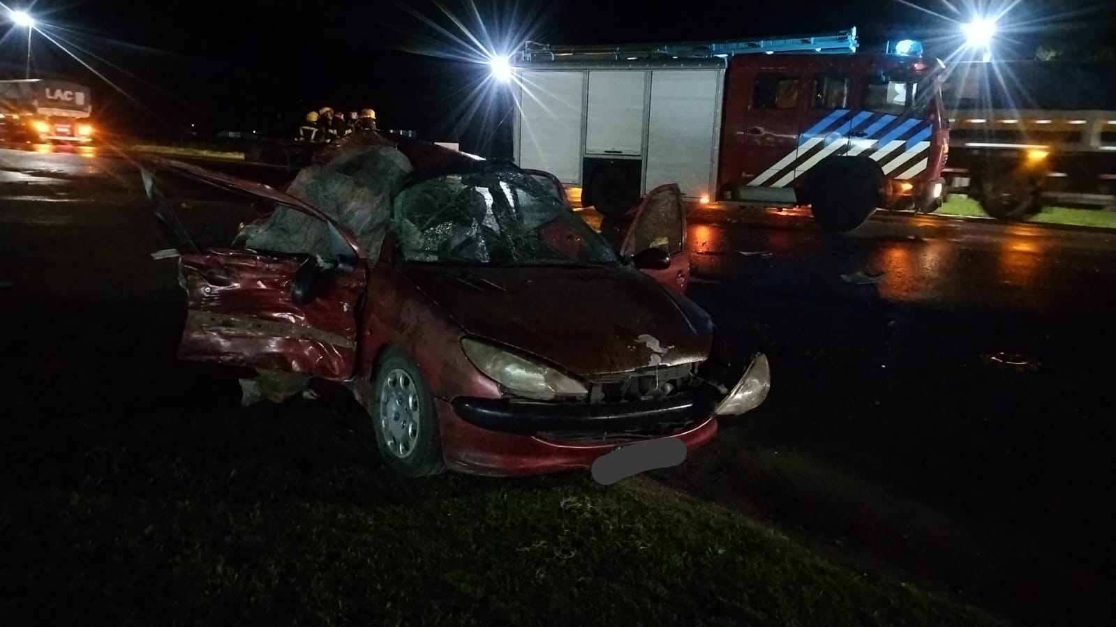 En el lugar colisionaron un camión Mercedes Benz Axor 2533, que circulaba en sentido Este–Oeste, y un automóvil Peugeot 206 que se desplazaba en sentido contrario. De acuerdo a las primeras pericias, el vehículo menor habría intentado ingresar al acceso desde la dársena cuando fue impactado violentamente por el camión.