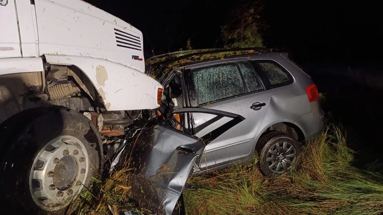 Un violento choque frontal dejó una víctima fatal en el km 187. Ocurrió bajo una lluvia torrencial. Un Volkswagen Suran impactó contra un camión aproximadamente a las 21:20