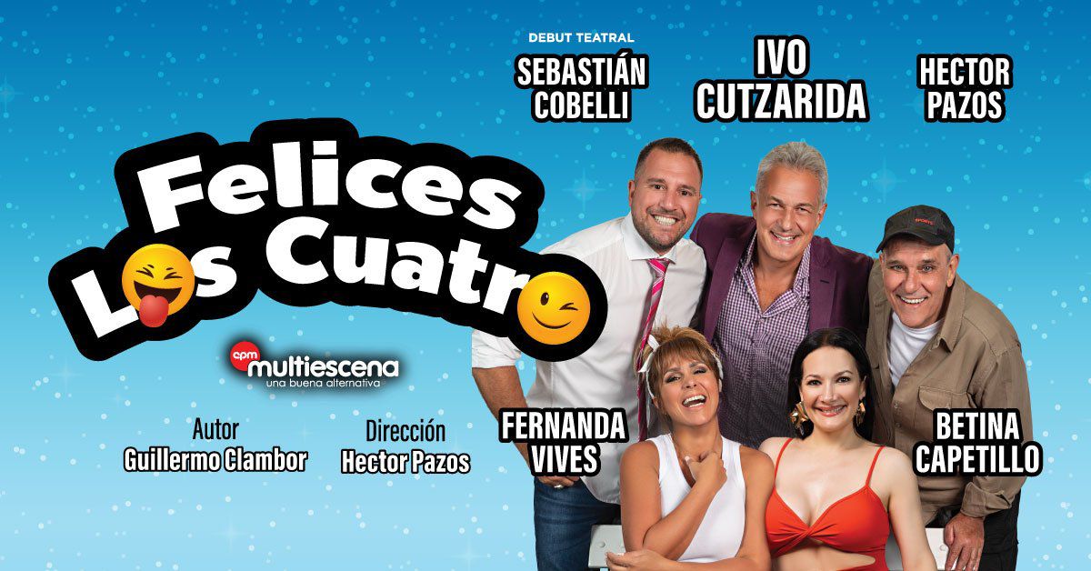 Los actores que integran la comedia, además de Ivo y Betina son: Héctor Pazos, Sebastián Cobelli y Fernanda Vives. La obra Felices Los Cuatro tiene funciones los días viernes, sábado y domingo en el Teatro Multiespacio a las 21 hs.