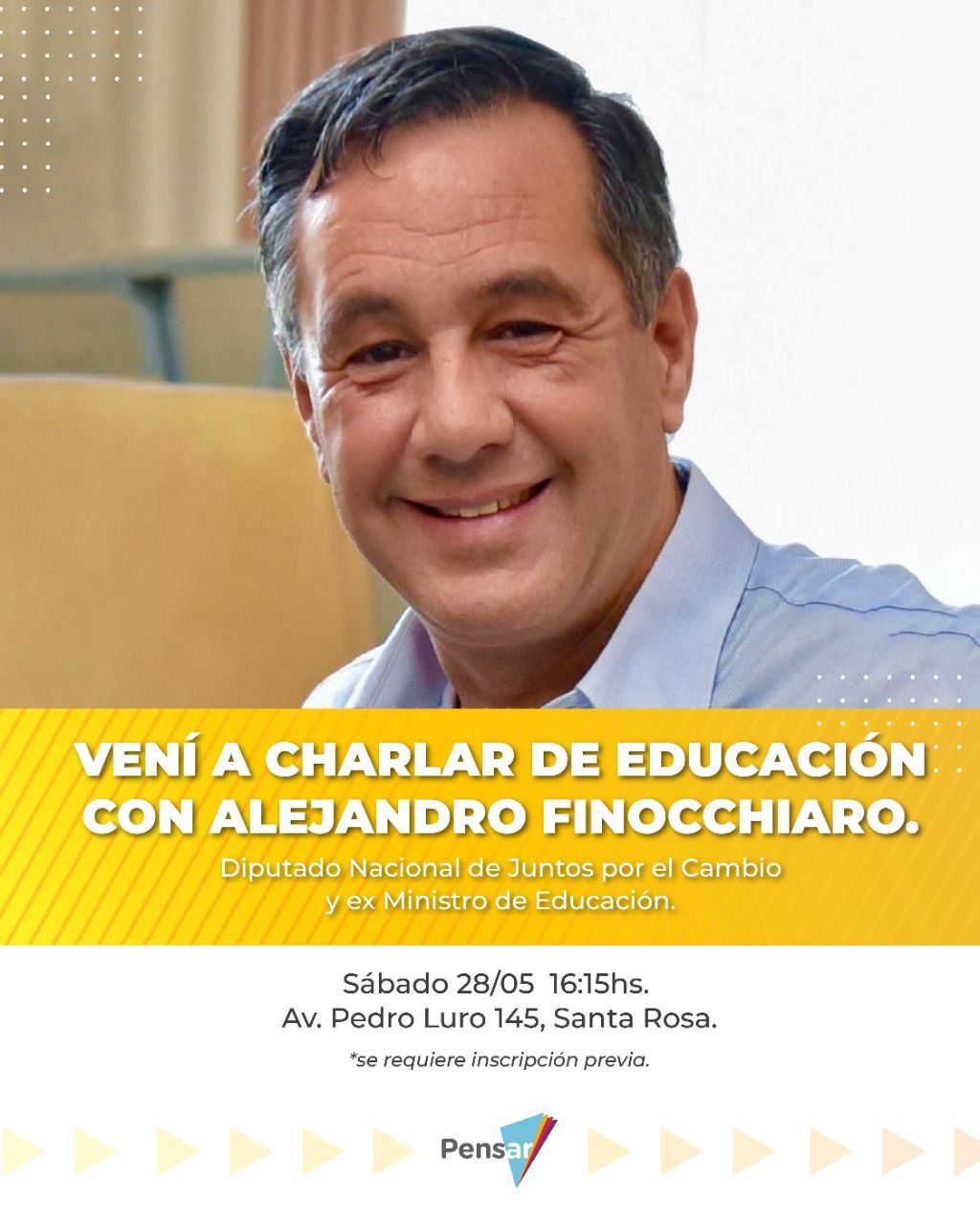 Finocchiaro disertará sobre educación este sábado en la Fundación Pensar
