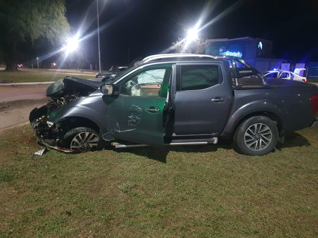 Una camioneta Nissan impactó con el cordón de la rotonda en Av. Perón 3300 a la altura del Vivero Dadan. Tras ese impacto el conductor perdió el control y colisionó el guarda-rail, para finalizar su trayecto con la columna del alumbrado público.