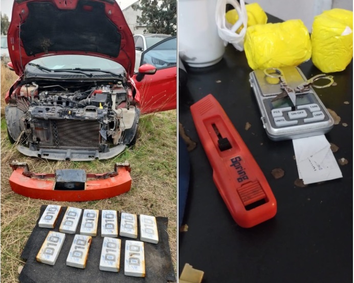 En territorio pampeano, el personal logró interceptar un vehículo sobre la Ruta Nacional N° 22, en cercanías de La Adela, donde se incautaron 4,4 kilogramos de cocaína y se detuvo a dos personas. Posteriormente, se hallaron 10 kilogramos adicionales ocultos en un doble fondo del chasis del vehículo, un método de ocultamiento que evidencia el grado de sofisticación de la organización. Con este resultado, estos 14,4 kilogramos secuestrados se suman a los 4,2 kilogramos incautados previamente en Catriló, totalizando 18,6 kilogramos de cocaína que se sacaron de distribución.