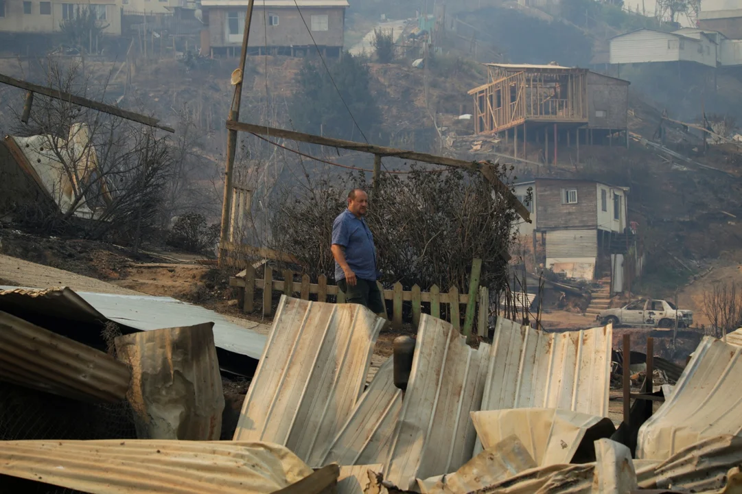 El fuego también obligó a detener la refinería Aconcagua, la segunda más grande del país, ubicada a unos 15 kilómetros al norte de la ciudad costera Viña del Mar, fuertemente afectada por los incendios.
