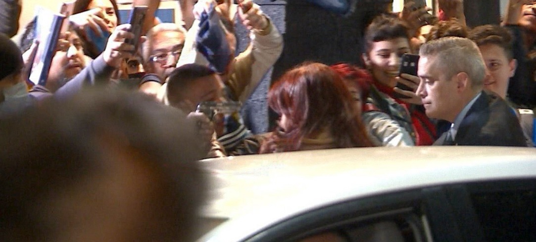 En ese momento se produjo un tumulto y Cristina Kirchner fue alejada de esa zona, aunque siguió saludando al resto de los militantes como lo hizo esta semana al llegar desde el Senado.